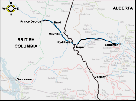 On 08 July 2004, at approximately 0810 Pacific daylight time,Footnote 1 Canadian National (CN) freight train M-359-51-07 (the train) departed Jasper, Alberta, destined for Prince George, British Columbia (see Figure 1). The train consisted of 2 locomotives, 18 loaded cars, and 18 empty cars. Sixteen of the loaded cars contained dangerous goods, six cars contained diesel fuel (UN 1202), six cars contained gasoline (UN 1203), and four cars contained methanol (UN 1230). The train was 2330 feet long and weighed approximately 3160 tons. The crew consisted of a locomotive engineer, a conductor, and a trainman. They met fitness and rest standards, were qualified for their respective positions, and were familiar with the subdivision.