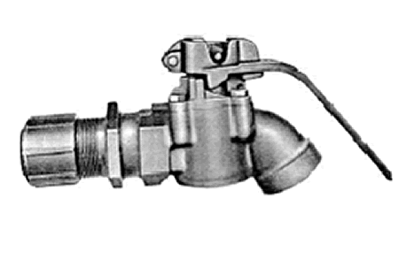 The angle cock (see Figure 2) is a valve located along the brake pipe at both ends of a car or locomotive. In the fully open position, the handle is in line with the brake pipe, and in the fully closed position, the handle is at right angles to the brake pipe. It can be opened or closed by the train crew to vent or preserve the air pressure in the brake pipe when cars or locomotives are uncoupled. Although not an approved practice, some railway personnel have been known to partially open an angle cock, on the standing portion of a train, to facilitate slow venting of the brake pipe. Trains proceeding in service with a partially open angle cock may have a reduced ability to apply the train brakes, or may not be able to apply the train brakes at all.