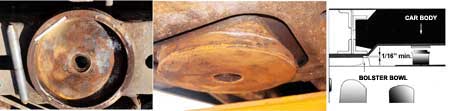 | Truck bolster bowl depth | 2 1/8" – bolster rim smeared and gouged | 1/16" clearance must be maintained |