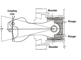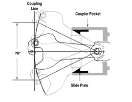The alignment control feature on the coupler restricts the lateral movement of the drawbar when longitudinal in-train forces are in compression, or buff. A lower drawbar angle reduces the lateral forces placed on the track at the wheel-rail interface and consequently lowers the possibility of derailment from rail rollover. Couplers without the alignment control feature provide a greater range of coupler movement while negotiating tight curves in yards and industrial spurs. Alignment control couplers, under buff conditions, can limit the drawbar angle to +/- 17 degrees, while couplers without alignment control permit a drawbar angle as large as +/- 34 degrees.Footnote 4 The locomotive manufacturer recommends that bolster stopsFootnote 5 be installed when locomotives without alignment control features operate in consists with units capable of generating high dynamic effort.