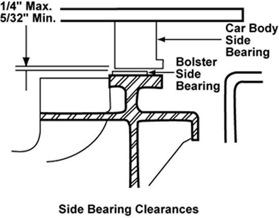 TC-approved Railway Locomotive Inspection and Safety Rules state in part that "The bolster side bearing and pedestal clearances shall be maintained within manufacturer's specifications."