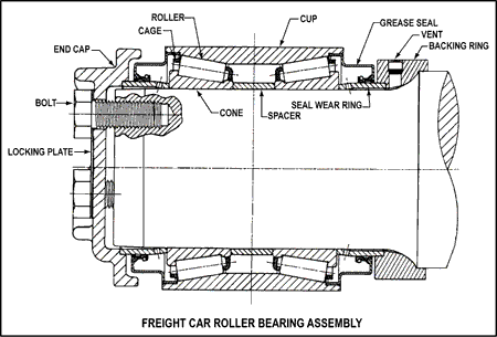 Roller bearings are designed to last the life of the wheel without further lubrication or other types of maintenance. The AAR does not require roller bearings to be removed based on any age or mileage criteria.