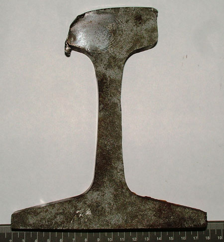 - The rail sections submitted for examination showed two detail fractures from shelling.