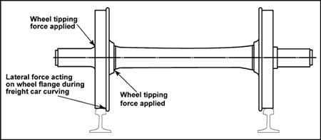 - With normal freight car curving, lateral forces acting on the wheel flange cause the wheel to tip slightly, which forces the tips of the harder bore spirals into the softer axle wheel seat material (see Figure 4).