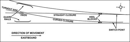 The turnout located at Mile 78.13 was a CN No. 12, 115-pound, hand-operated (CN Standard Plan Drawing TS-012) with the switch points facing east (see Appendix A). There were no records on the origin and history of the north switch point rail. It was rolled in 1965 but was probably never installed in track before its installation at the accident site in 2004. It had less than 2 mm of wear.