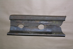 The holes were plastically deformed but there were no burrs around them. Although the fine surface details on the rail fracture surfaces had been obliterated, the smooth, polished appearance of the fracture surfaces was indicative of pre-existing fatigue cracks, whose surfaces were rubbing over an extended period. The base of the fractured north switch point rail and the south switch point rail were compared; the indications of long-term rubbing wear were more severe on the north switch point rail.