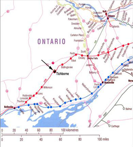 After departing from Toronto, the trip was uneventful. While en route, the train passed over a wayside inspection system which included hot bearing and dragging equipment detectors at Mile 56.90 of the Belleville Subdivision. There were no indications of overheated roller bearings or dragging equipment. At 2237:49, while travelling in throttle 8 at a speed of 47.3 miles per hour (mph), an undesired emergency application of the train air brakes occurred at Mile 41.45. At 2238:31, the lead locomotive came to rest at Mile 41.17. After stopping, the crew members followed emergency procedures and determined that 13 cars (the 12th through the 24th) had derailed, near Tichborne, Ontario (see Figure 1).