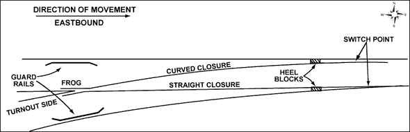 Turnout M150 is a CN No. 12, 132-pound, hand-operated turnout (CN Standard Plan Drawing TS-012) with the switch points facing east (see Appendix A). The Samson switch point was manufactured in 1976 by Algoma Steel. The switch point and the straight closure rail had less than 2 mm of wear.