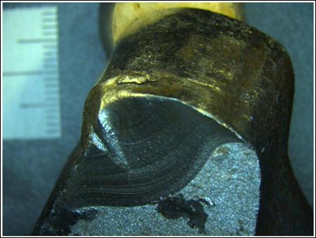 The metallurgical analysis did not reveal any manufacturing defects or anomalies such as inclusions or porosities. The switch point showed an average hardness of 273 BHN (Brinell hardness) and the closure rail showed a hardness of 305 BHN.