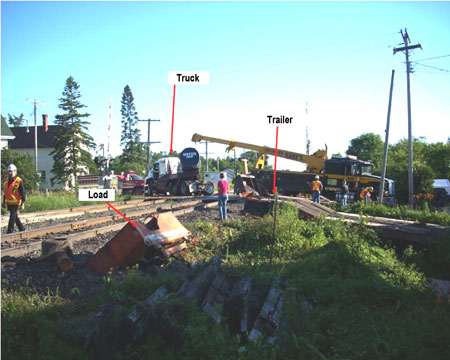 The Ontario Ministry of Transportation (MTO) requires special permits for the transportation of heavy equipment. A permit specifies timing and routes, and whatever special arrangements are made to accommodate an oversized load's passage. Railways will arrange for crossing occupancy protection. Unless lowboy equipment is carrying an oversized load, it does not require a special ministry permit. The load involved in this occurrence was not oversized.