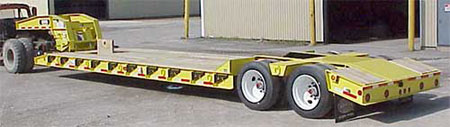 The lowboy trailer (see Photo 5) was a 1976, 48-foot, model TC3, manufactured by Rogers Bros. Corp., and licensed by the Province of Ontario. The overall length of the tractor/trailer combination was approximately 60 feet (18.28 m). A full mechanical inspection had been performed 12 months before the accident, and a post-accident examination was conducted on site. In addition, the required pre-trip inspection had been conducted. No deficiencies were noted.