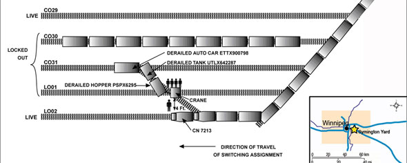 Canadian National (CN) developed and implemented track protection procedures for derailment clearing operations within the Winnipeg Terminal.