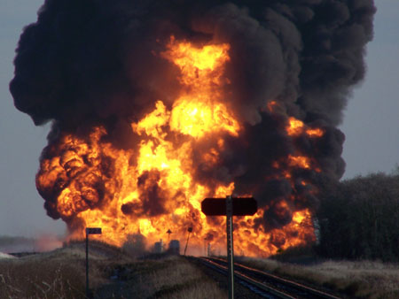On 09 December 2009, TC approved a second CN plan to conduct vent and burn operations on the 8 remaining LPG tank cars, as none of the cars could be safely moved. At approximately 2000, the second vent and burn operation was executed (see Photo 2).