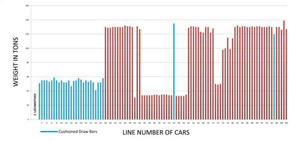 - While it may seem appropriate to apply the TrAM load threshold of 45 tons to empty long cars with wide angle couplers and pre-loaded EOCCD draft gear, marshalling them ahead of heavier loaded cars increases the risk of derailment during heavy braking events.