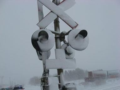- Visibility of the active crossing protection system was greatly reduced and road conditions were made slippery by the severe weather conditions at the time of the accident.