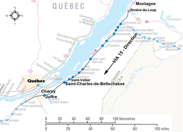 | 0407:32 | The east switch at Saint-Charles-de-Bellechasse was confirmed in the reverse position (that is, lined towards the siding). | ||||