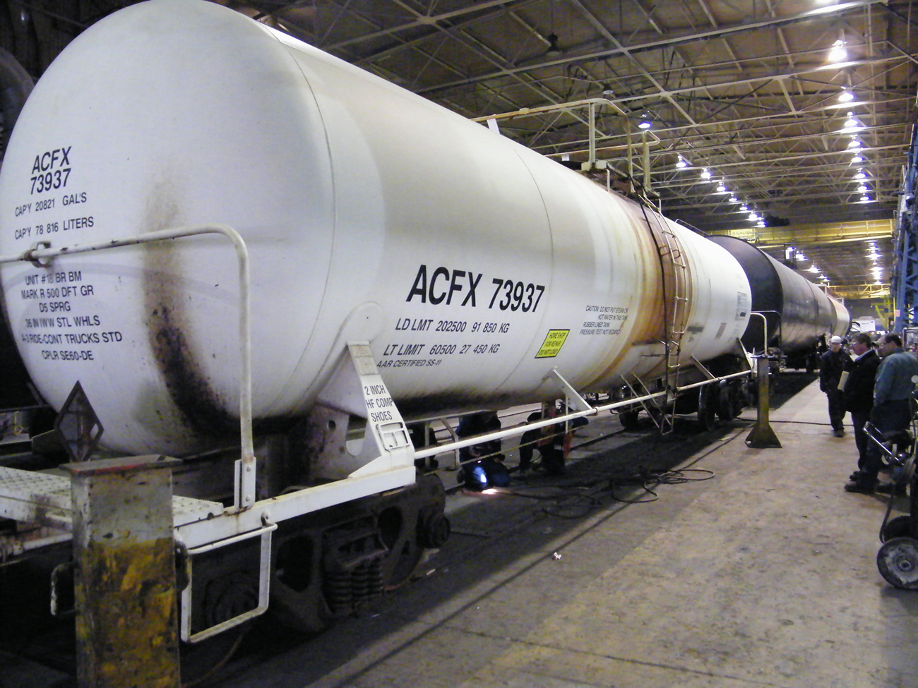 ACFX 73936 was a 100 ton (263K) non-pressure, non-jacketed, non-insulated, rubber lined, DOT111A100W5 tank car with a capacity of 20 800 US gallons. It was manufactured under Certificate No. A901024 in June 1990 by ACF Industries Inc., a company that is no longer in business. It was owned and maintained by GE Capital Rail Services and leased to Kemira Water SolutionsFootnote 4 which was responsible for the installation and maintenance of the rubber liner.