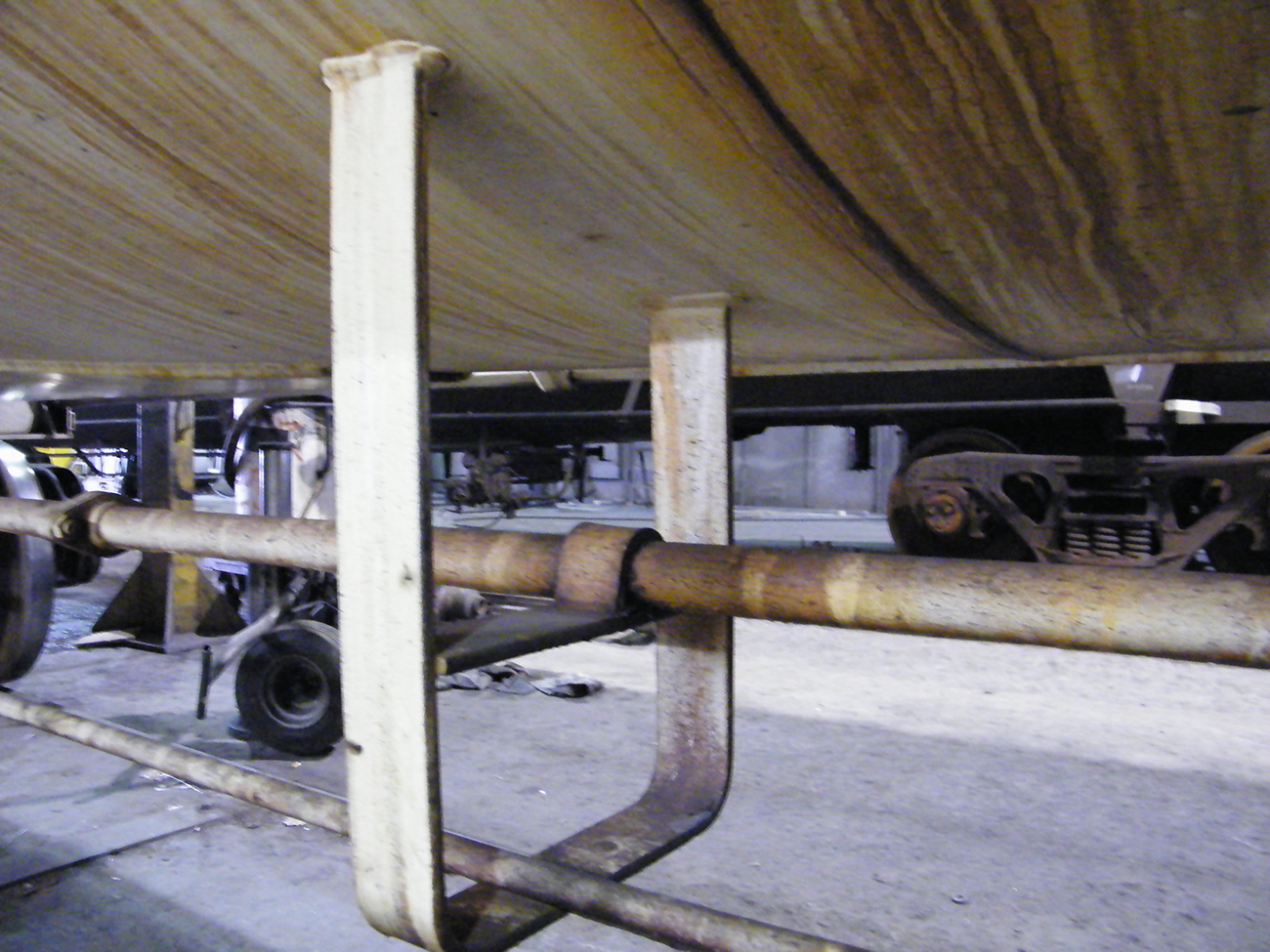 For non-pressure tank cars constructed prior to September 1990, such as ACFX 73936, similar brackets could be welded directly to the tank shell provided that the weld measured 1⁄4 inch or less and was less than 6 inches in total linear length as specified on the drawing. The same criteria was stipulated in both CFR Part 179, Subpart D, Subsection 179.200-19 Reinforcements and CGSB-43.147–2005 Section 16.7 – Attachments.
