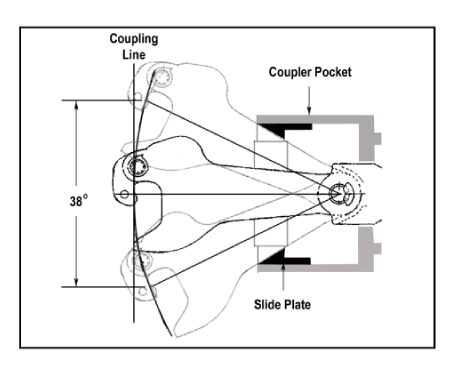 - The couplers on the isolated passenger locomotives with no alignment control had coupler angles up to 21° in jackknifed positions as measured on the derailed equipment.