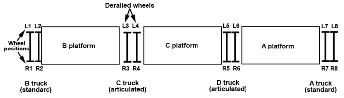 - The L3 and L4 wheels dropped into gauge in close proximity to each other but not simultaneously.