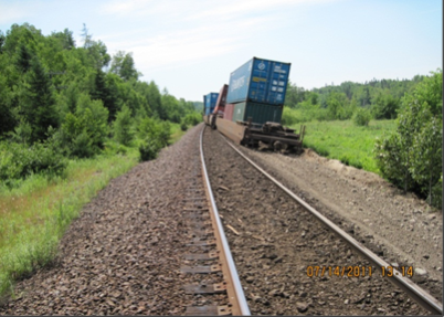 When considering the track-geometry variations and the car component conditions, neither factor alone was considered sufficient to cause the derailment conditions. These conditions had likely resulted from the combined effects of the weakened track structure, truck component condition and known doublestack car-cornering behaviour.