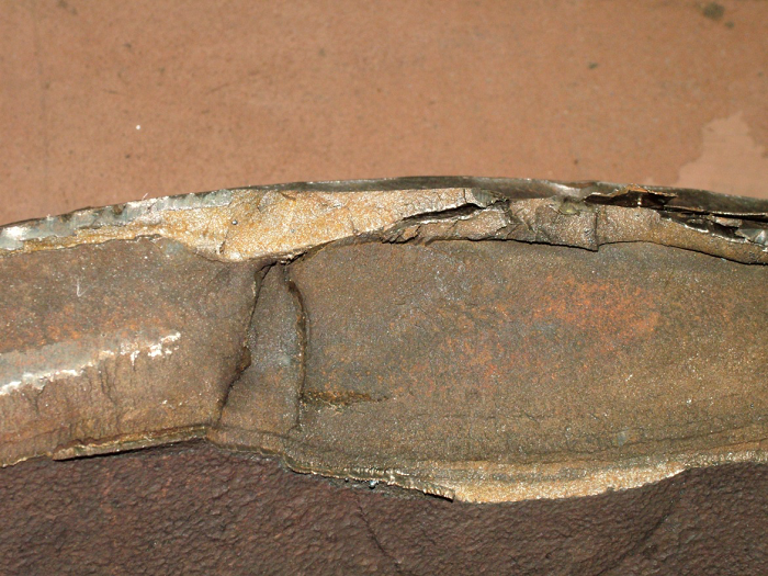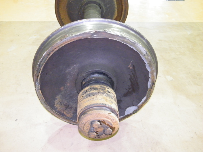 - Subsurface-initiated fatigue - This usually initiates approximately ¼inch below the tread surface. This process is caused by a combination of high vertical loading and locally low fatigue resistance of the material such as that resulting from microscopic manganese sulfide inclusions. Once a crack initiates in the subsurface layer, it initially grows parallel to the tread. There are usually no macroscopic inclusions or voids at the point of initiation.