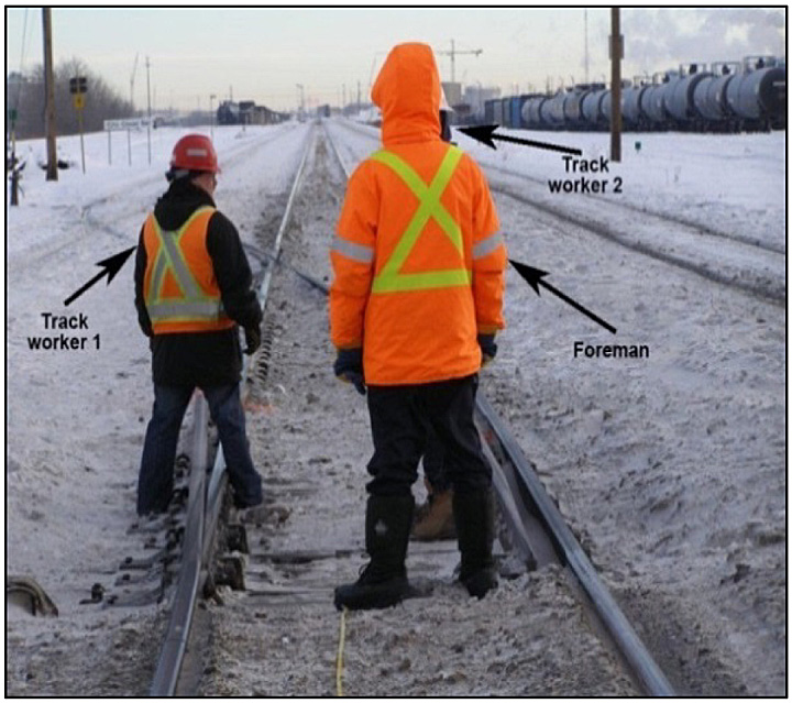 A 1993 video (Funeral for a Friend) that highlights a number of fatalities involving engineering servicesFootnote 10 (ES) employees on CN tracks was also used as a training aid. The video indicates that, in each case, proper track protection was not obtained. Safety watch protection is also discussed as an approved form of track protection. The example provided involves use of loud machinery on track, with the safety watch employee wearing hearing protection.