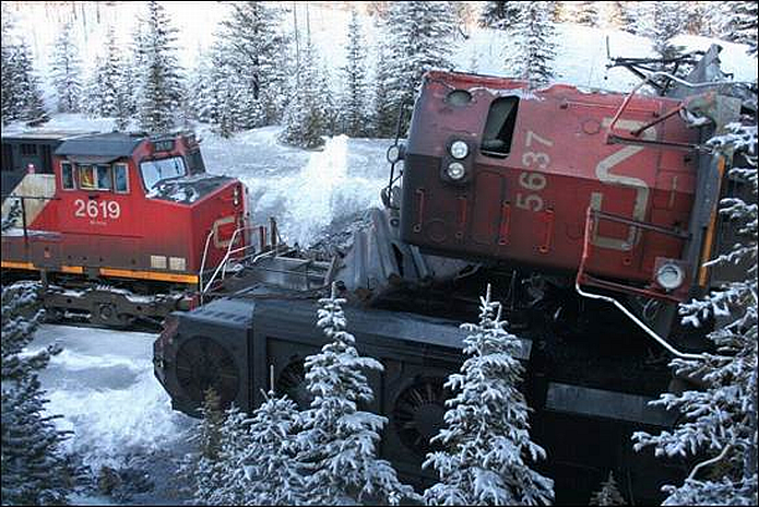 - Despite the high impact forces during the collision, the locomotive cab on CN 5637 did not collapse, but rather provided a safe area for the locomotive engineer trainee who sustained serious (but non-life threatening) injuries.