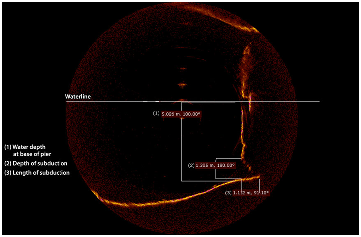 Table 3 summarizes the results of the sonar survey at Pier no. 2. The sonar images for drop no. 2, drop no. 3, and drop no. 4 are presented in Appendix B.