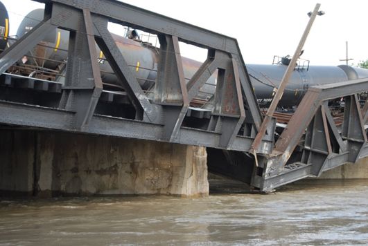 - The cars were tethered together in the event of total collapse of the bridge. The decision was made to unload the loaded tank cars before removing them from the bridge. The adjacent 1969 bridge was deemed by CP and by city engineers to be safe for allowing empty tank cars to be positioned on the bridge for off-loading.
