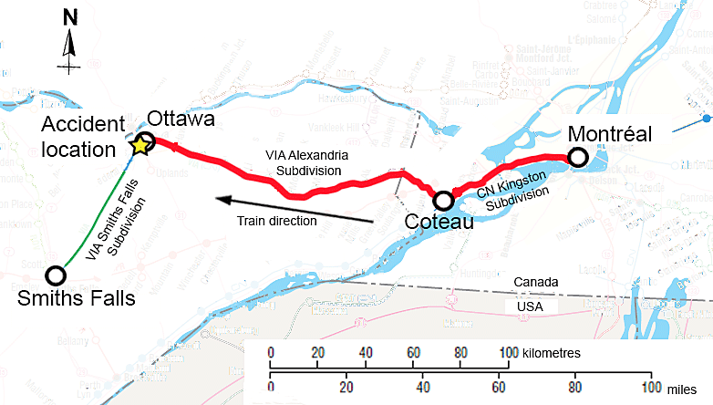 VIA passenger train No. 51 (VIA 51) operates daily (Monday to Friday) westward from Montréal, Quebec, to Toronto, Ontario, via Ottawa (Figure 1).