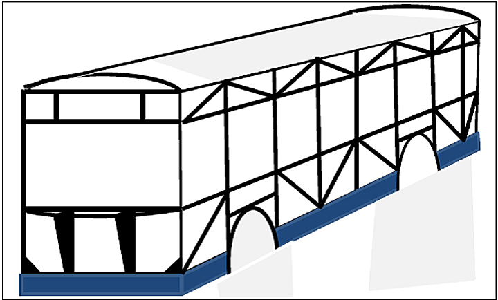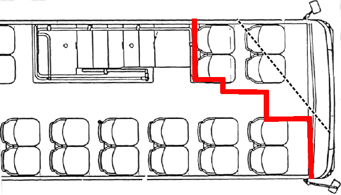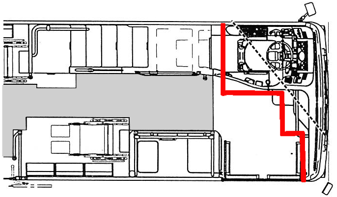 Right side view of the bus (the dotted line represents contour of locomotive VIA 915)