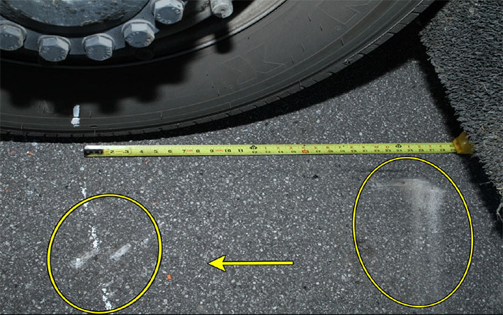 Image of the skid marks on Transitway under rear drive tires