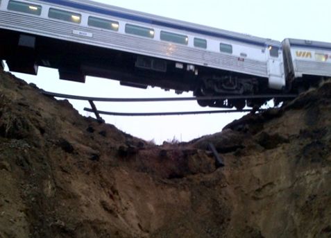 - As the train passed over the unsupported portion of track, the embankment collapsed further beneath the weight of the train, leading to the derailment.