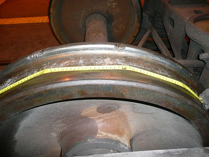 - The rail head had ½-inch vertical wear and ¼-inch flange wear.