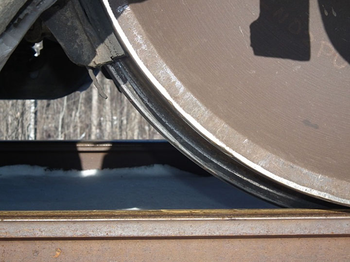 - When there is wear on the gauge face of the high rail, 2-point contact between the wheel and the rail may occur when flanging around the curve, lowering the L/V threshold for wheel climb or rail rollover.