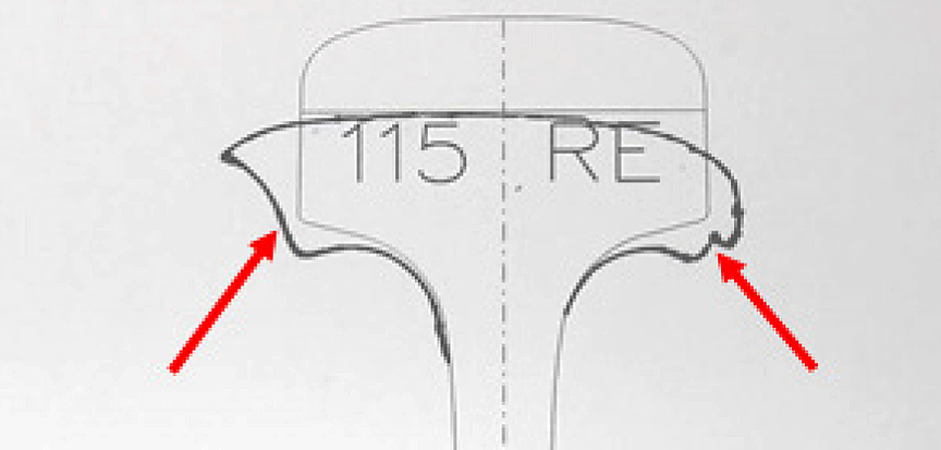 The size of a detail fracture is commonly recorded as the percentage of the cross sectional head area of the rail. As the size of the detail fracture increases, less of the head area is available to support the load. Once the defect reaches a critical size, the remaining rail head area would no longer be able support the load, resulting in sudden and complete failure of the rail. This situation is accelerated when the rail head area has already been reduced due to wear.