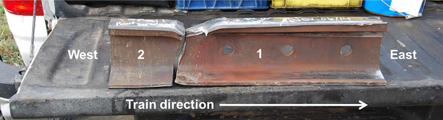 - The rail had likely been broken by the preceding westbound train due to a transverse detail defect.