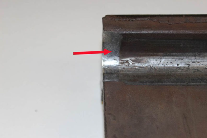 - The fillet under the head on rail piece No. 1 had been extensively deformed by the ends of the joint bars (photos 4 and 5).