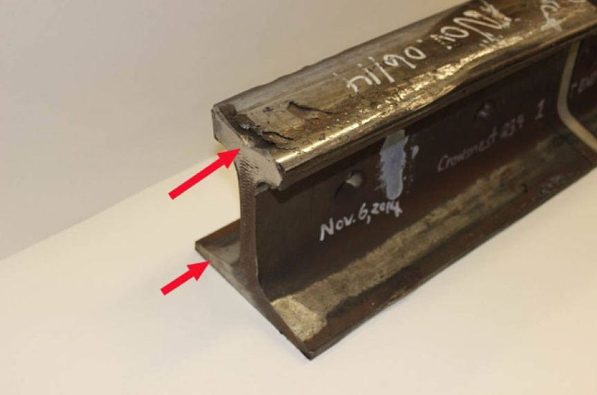 | 99.6 | Crushed rail head | 1981 Algoma |