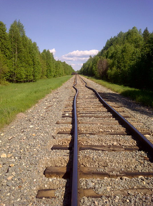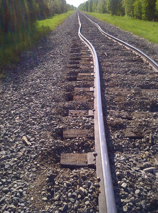 Image of the westward view showing track shifted in the ballast