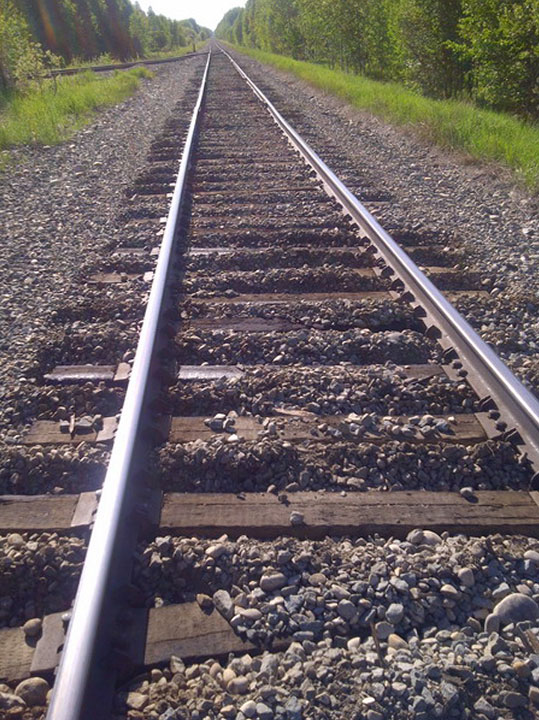 Image of the ballast and rail anchoring conditions leading up to the derailment site