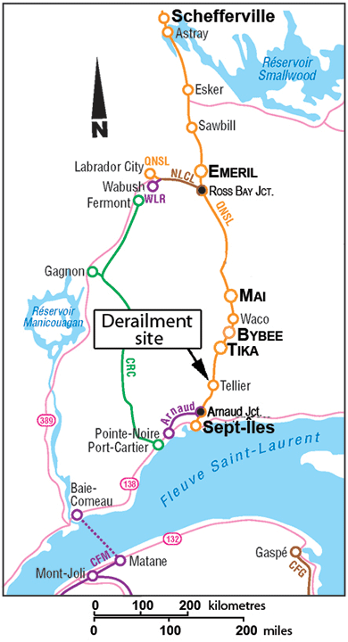 | 0520:00 | Train BNL-212J reaches the controlled location at Sept-Îles Junction and enters the main track, in CTC territory. |