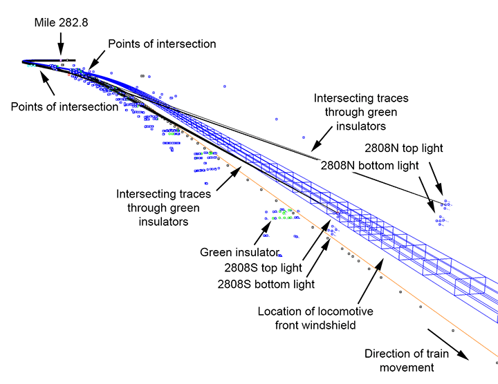 - Between Signal 2808S and Mile 281.4 (i.e., the approximate location where the signal indication was identified and communicated by the train crew), there were 116 green insulators on the pole line.