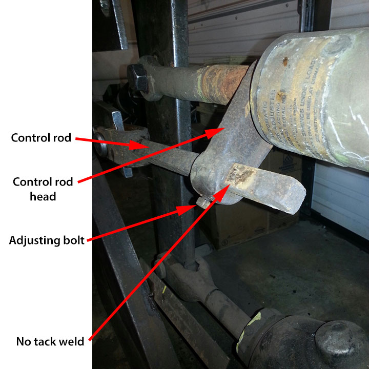 It was also noted that the control rod on the slack adjuster was not tack welded to the control rod head as required, potentially allowing it to move from its initial setup position, which can affect its performance.