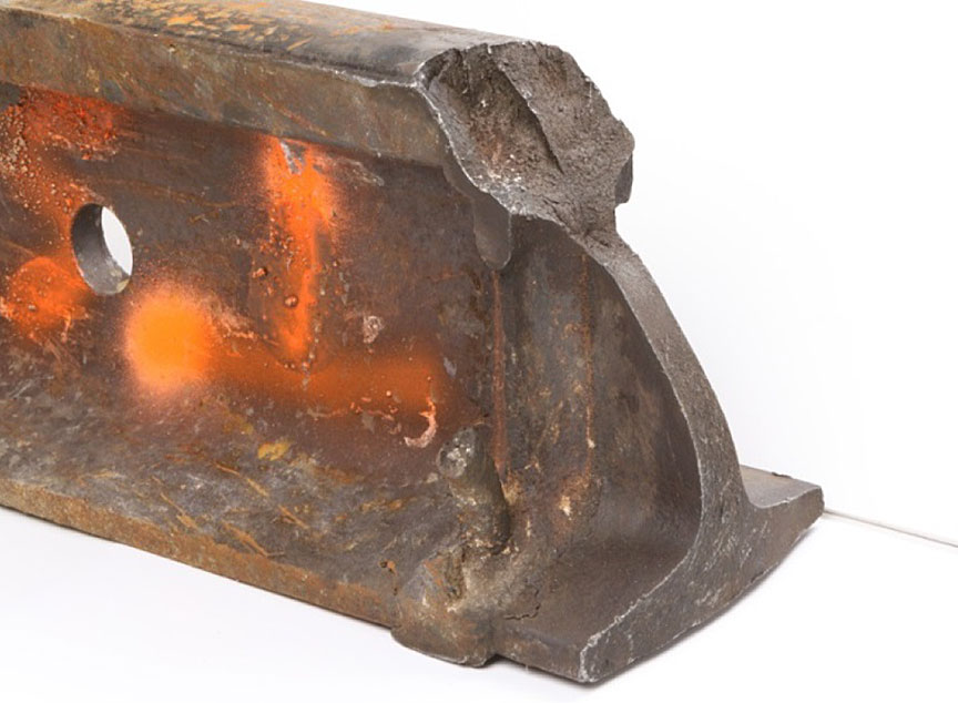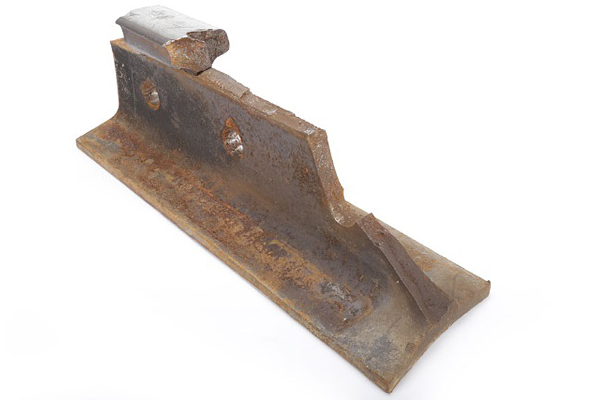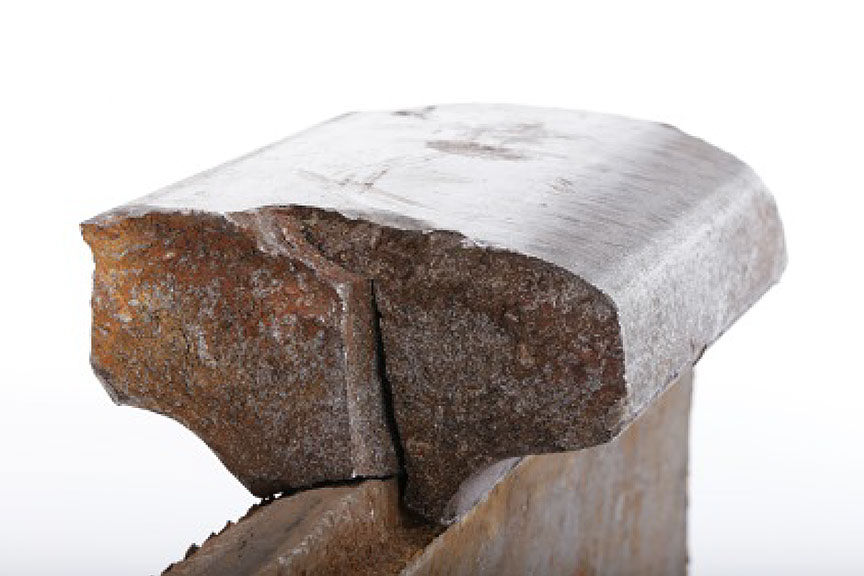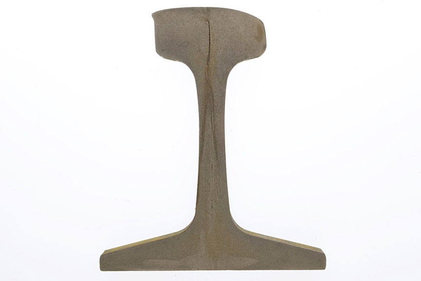 - Most of the rail head of the 20-inch section had broken off (Figure 7). Only a 4-inch-long piece of the rail head was recovered.