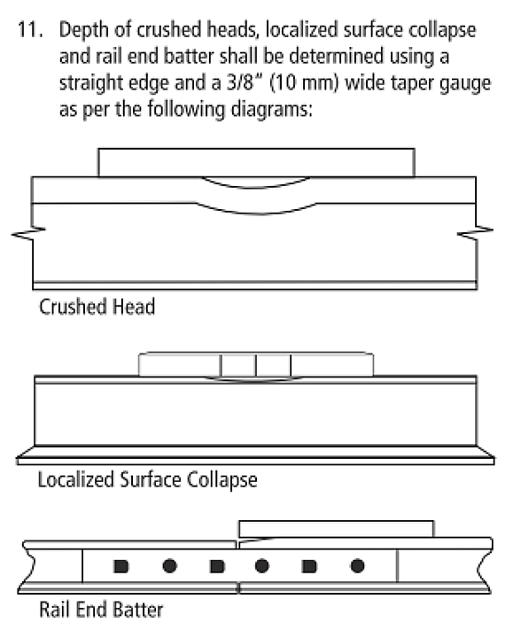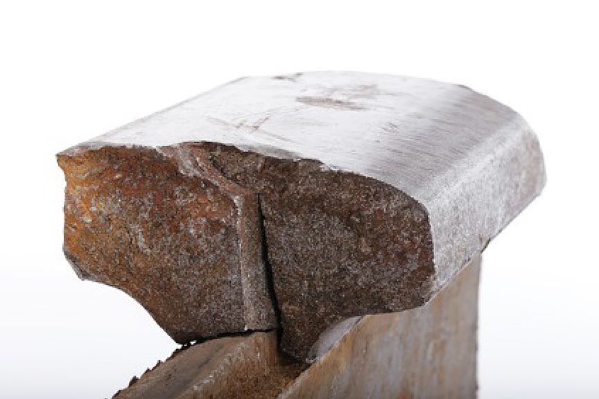 - The 4-inch-long piece of the rail head that was recovered exhibited a vertical split head (VSH) rail defect (Figure 8).