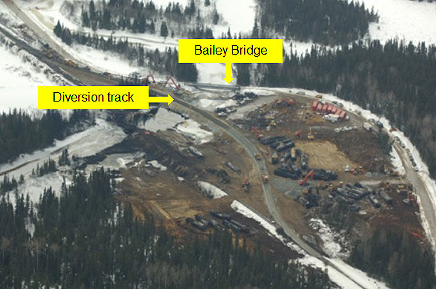Because the accident resulted in a lengthy track outage and impacted rail operations, CN constructed a 1482-foot-long diversion track to the south of the accident site (Figure 9).