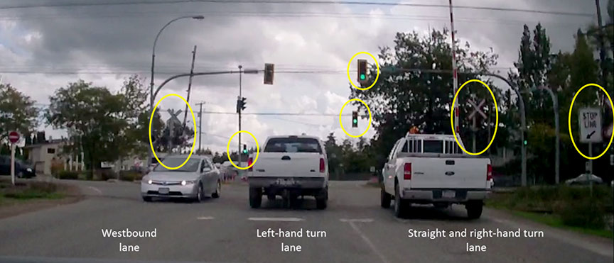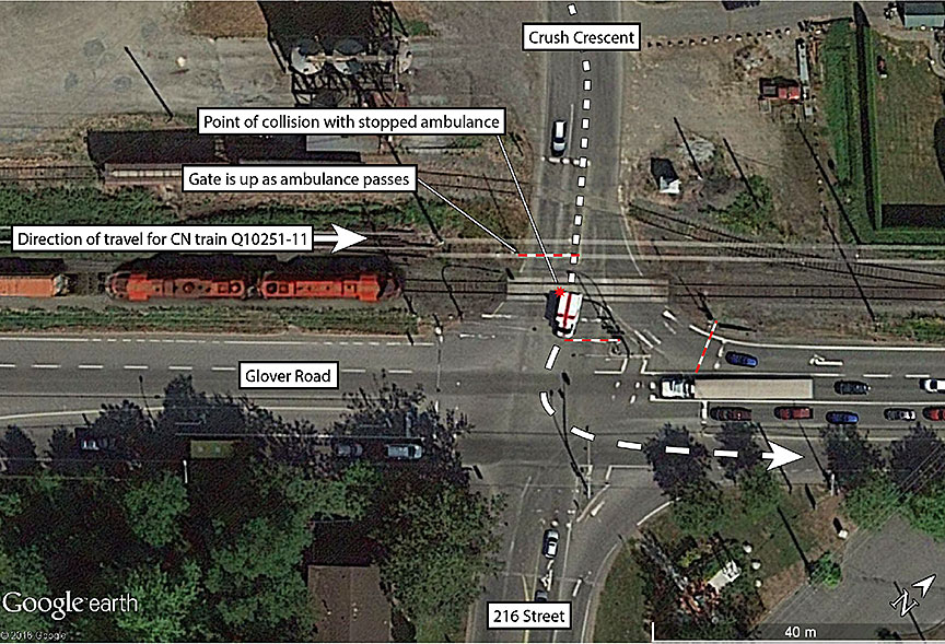 The chosen route to Abbotsford included traversing the grade crossing at the intersection of Crush Crescent and Glover Road (Figure 1). The ambulance driver had limited experience with this route.