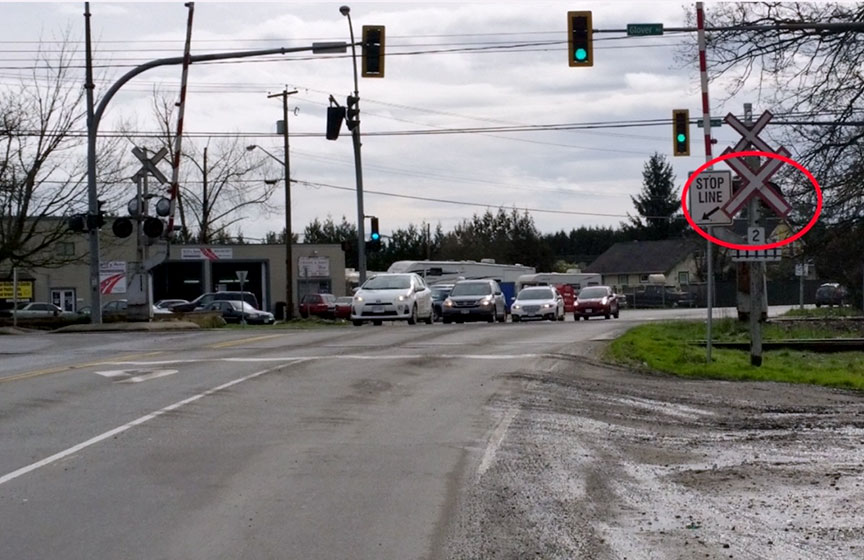 As a result of the RSA, the crossing design was reviewed again by TC. Through this review, TC determined that with the GCWS signal and gate at the mainline crossing, and the Milner storage track protected by the standard railway crossing sign, there were effectively 2 separate crossings. Since the mainline track and the Milner storage track were separated by about 13 m, these 2 tracks should have been treated as 1 crossing, as per the definition of a single-grade crossing in the Grade Crossings Regulations, which states: "… two or more road crossings at grade where the lines of the railway are not separated by more than 30 m."